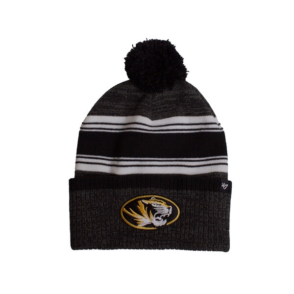 This officially licensed University of Missouri beanie features a classic striped black and white knit pattern with a fold-over cuff and a soft pom pom topper. The embroidered Mizzou Oval Tigerhead logo on the cuff adds a bold touch of school pride, making it a must-have accessory for fans and alumni alike.