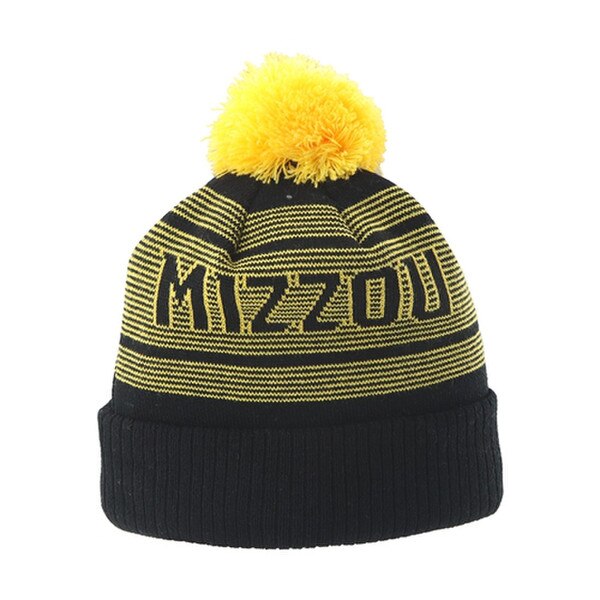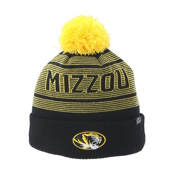 Top off your Tigers pride with this bold black and gold Mizzou beanie. This cuffed knit hat features high-contrast team colors, “MIZZOU” woven across the crown, and a bright gold pom for a standout look. The ribbed black cuff includes an embroidered Missouri Tigers logo patch for an added spirit boost.