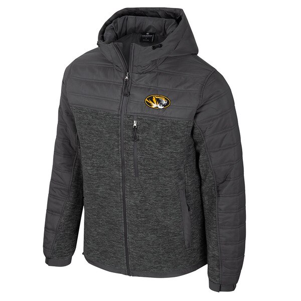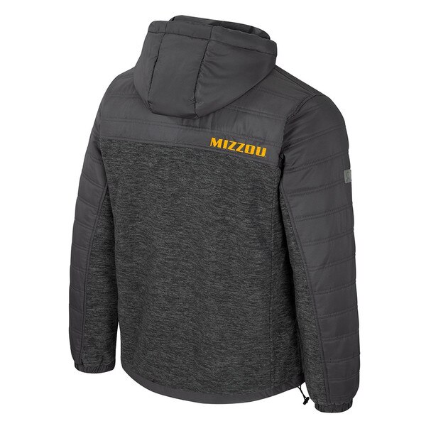 Stay warm, comfortable, and game-day ready with this Mizzou Full-Zip Hooded Jacket. Designed for dependable cold-weather performance, this jacket combines quilted insulation with soft knit fleece panels for lightweight warmth without added bulk. The full-zip front and adjustable hood offer easy layering, while the embroidered Tiger logo on the chest and bold “MIZZOU” lettering on the back deliver unmistakable University of Missouri spirit.