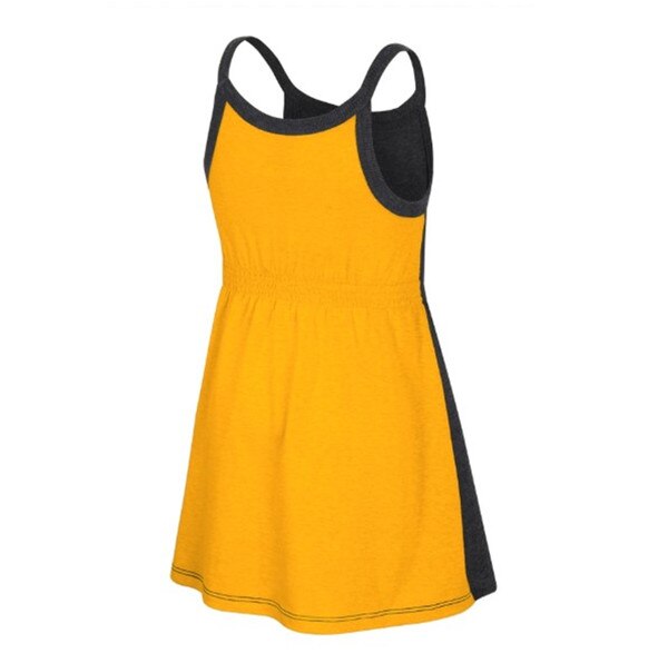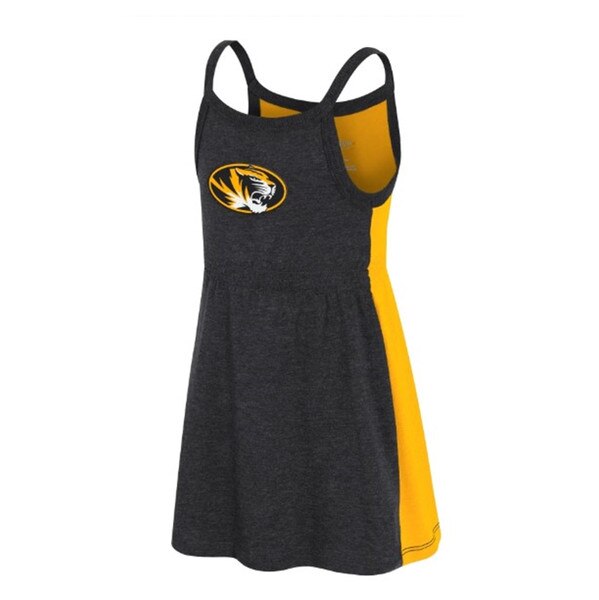 Get your little fan game-day ready in this adorable Mizzou Tigers Toddler Dress. Designed with team pride in mind, this sleeveless sundress features a black front panel with the official Mizzou Tiger head logo and vibrant gold side and back panels for a bold, spirited look. Soft and breathable fabric ensures all-day comfort, while the elastic waistband provides a snug yet flexible fit for active toddlers.