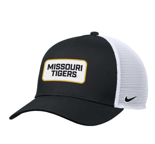 - Embroidered “Missouri Tigers” patch on front, Tiger oval logo patch on mesh back, and Nike Swoosh on side