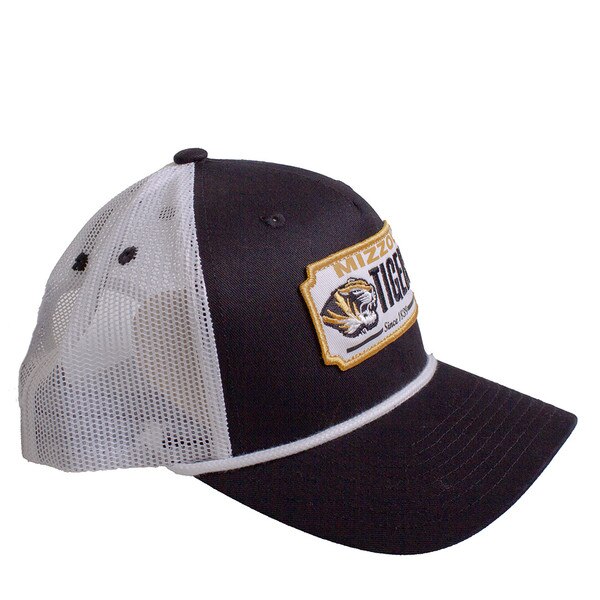Black and White Zephyr Mizzou Tigers Since 1839 Tigerhead Patch Cargo Rope Structured 5 Panel White Mesh Back Hat
