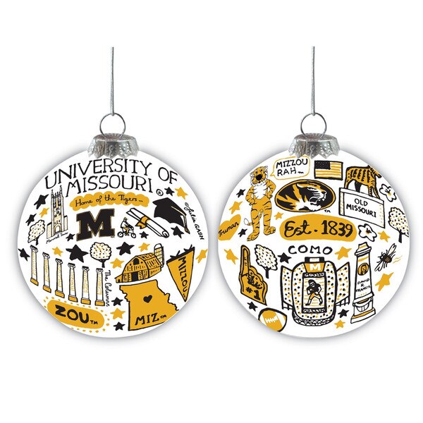 Celebrate your Tiger pride this holiday season! This University of Missouri Hand-Illustrated Ornament beautifully captures the spirit of Mizzou with charming artwork that highlights campus landmarks and beloved symbols. From Jesse Hall and the Columns to Truman the Tiger and Memorial Stadium, each detail is drawn in the iconic black and gold that every fan knows and loves. Perfect for hanging on your tree, gifting to alumni, or displaying year-round, this ornament adds a touch of Columbia, Missouri spirit to any celebration.