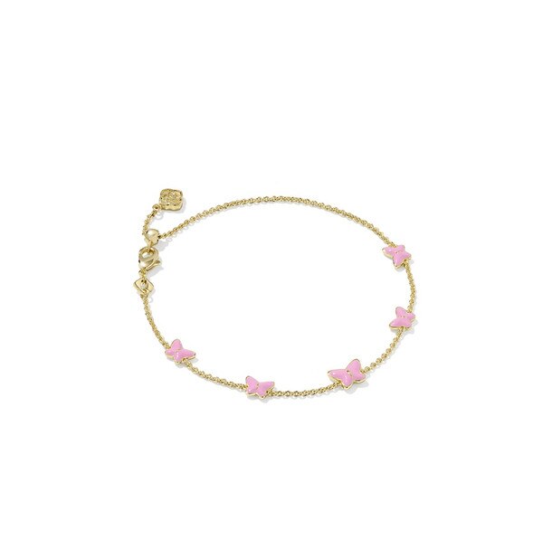 Bring a touch of whimsy and elegance to your look with the Kendra Scott Lillia Butterfly Bracelet. This dainty bracelet features a fine gold-tone chain accented with pink enamel butterfly charms, symbolizing transformation and beauty. Lightweight and versatile, it’s perfect for layering with other bracelets or wearing solo as a subtle statement. Designed with an adjustable clasp for a comfortable fit, this bracelet transitions seamlessly from casual daytime wear to evening elegance. A meaningful gift or personal keepsake, the Lillia Butterfly Bracelet adds feminine charm to any jewelry collection.