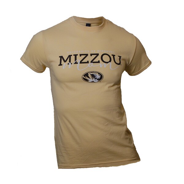 Yellow Oval Tiger Head Mizzou Mom Script Tee