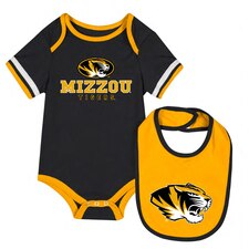 Black and Gold Mizzou Tigers Oval Tigerhead Onesie with Gold Tigerhead Bib Set