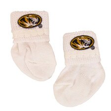 Mizzou Infant Oval Tiger Head Gold & White Striped Booties