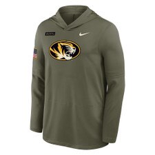 Olive Green Nike Mizzou Oval Tiger Head Flag Long Sleeve Hooded Tee