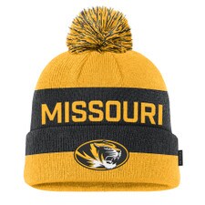 Gold & Black Nike Missouri Oval Tigerhead Pom Beanie