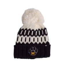 Black and White '47 M Paw Embroidery on Cuff Beanie with Pom