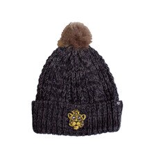 Heathered Black and Gold Zephyr Oval Tigerhead on Cuff Striped Beanie with Pom