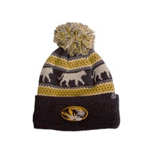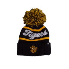 Black, White, and Gold Zephyr Mizzou Beanie Tiger Embroidered on Cuff Beanie with Pom