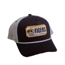 Black and White Zephyr Mizzou Tigers Since 1839 Tigerhead Patch Cargo Rope Structured 5 Panel White Mesh Back Hat