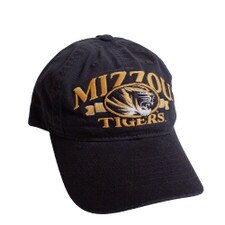 Black Zephyr Mizzou Tigers Gold Lettering and Ribbon Design Oval Tigerhead Embroidery Hat