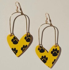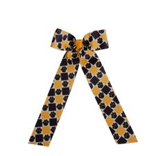 White, Black, and Gold Divine Creations Checkered Paw Design Hair Bow Long