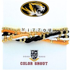 Black Gold and White Mizzou Beaded Bracelet Stack