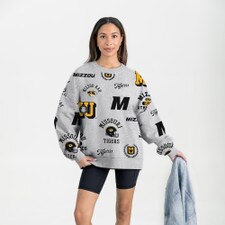 Grey Mizzou Tigers Allover Logo Crewneck Sweatshirt