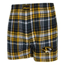 Black and Gold Oval Tigerhead Left Leg Mizzou Center Waist Patch Flannel Women's Short