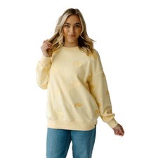 Pale Yellow Oval Tigerhead Embroidered Whole Women's Crewneck Sweatshirt