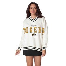 Cream Mizzou Tigers Est. 1839 Oval Tigerhead Striped V-Neck and Cuffs Juniors Sweatshirt