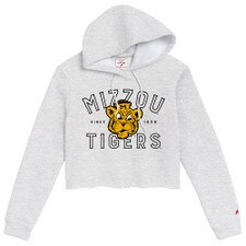 Ash Gray Mizzou Tigers Since 1839 Beanie Tiger Cropped Hooded Sweatshirt