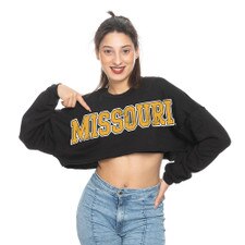 Black ZooZatz Missouri Tailsweep Juniors Crop Crewneck Sweatshirt