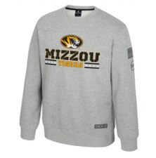 Grey Mizzou Tigers Oval Tiger Head Operation Hat Trick Crew Neck Sweatshirt